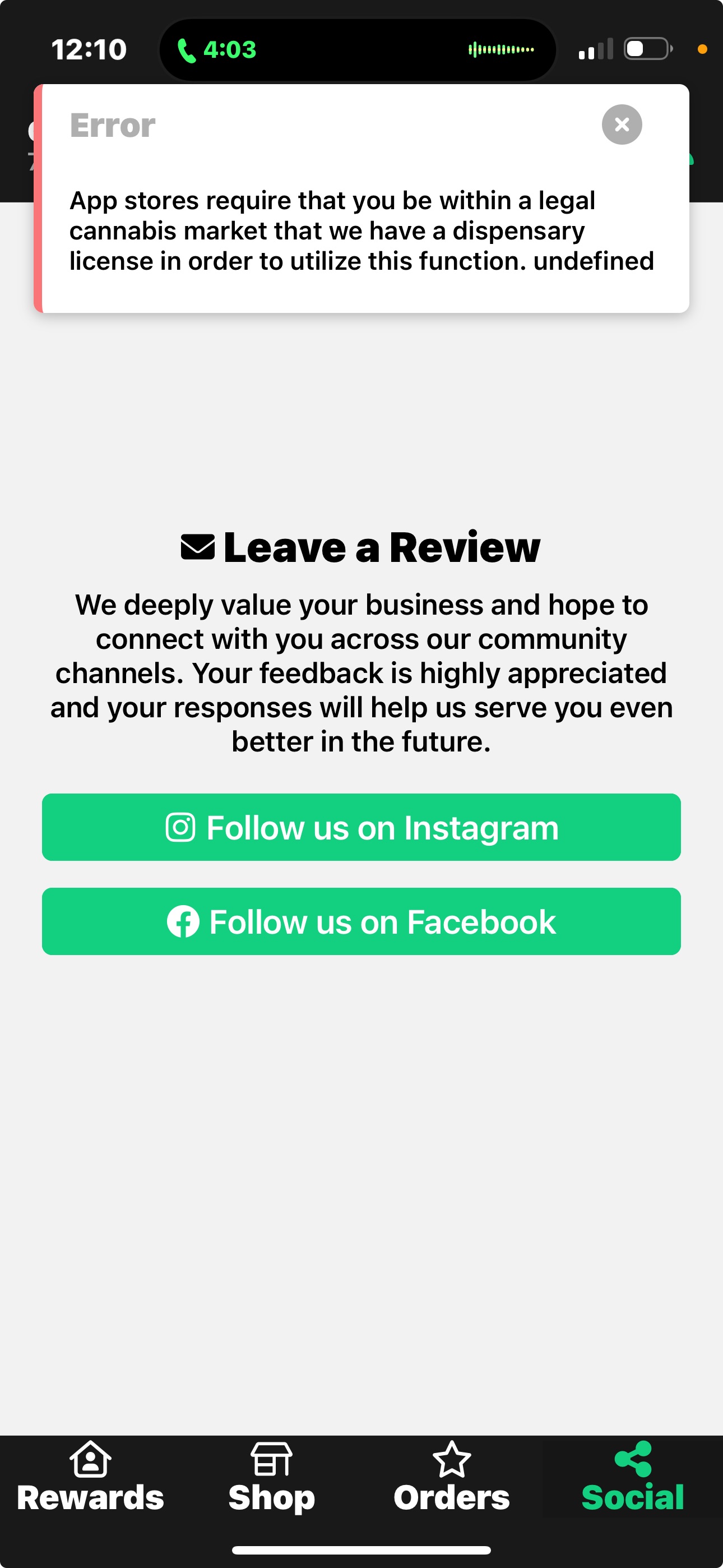 This issue arises because the user has their location turned off in their settings. The Mercy app can't tell where the user is logging in from. This policy prevents customers out of our normal trading territory like out of State/Country from ordering our products.